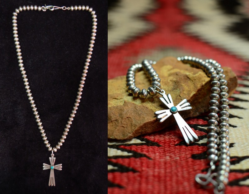 ナバホ族の作品で、美しいシルバービーズとクロストップにより構成されたビンテージネックレスです。 古い作品ながら上質感があり、洗練された印象に仕上がったピースです。