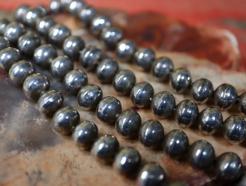 またそのシェイプも、完全な球体より僅かに偏平した、ぽってりと愛らしい形が連なり、僅かな個性とナバホパールらしい表情を生み出しているようです。