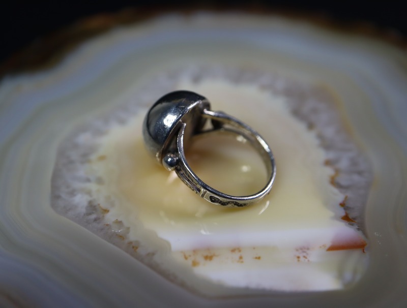 小さいサイズのリングとなりますが、こちらのナバホパールの渋くソリッドな表情等、男性のピンキーリングにも向いた作品となっています。