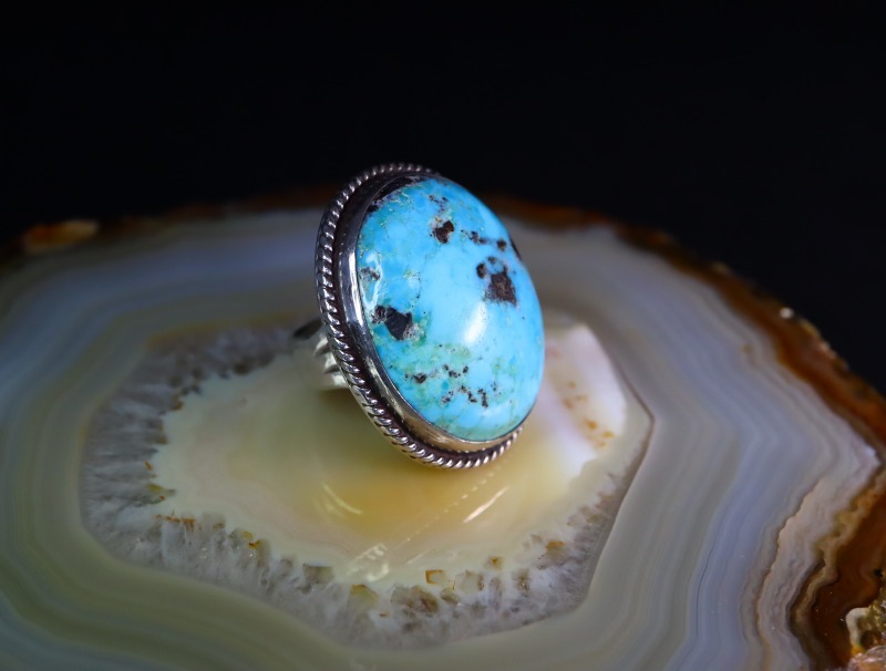 特別なボリューム感と迫力を持ったリングですが、ナチュラルでアーシーなターコイズやシンプルなシルバーワークにより仰々しい印象はなく、どこか愛らしくキュートな雰囲気を有しています。しかしながらチープな質感や派手な印象を与えないのは、作者の卓越した技術や造形センスによるものと思われます。