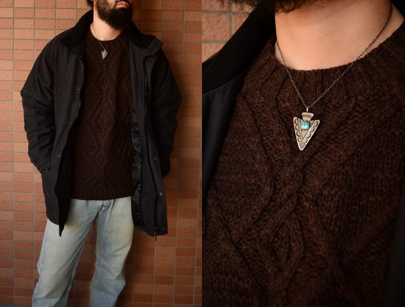 アメリカ国内では、インディアンのアイコンともなっている『アローヘッド』型のトップは、エスニシティでありながら現代的な印象も持った作品であり、多くの素材に馴染みやすく、性別やコーディネイトを選ばず取り入れて頂きやすい印象です。