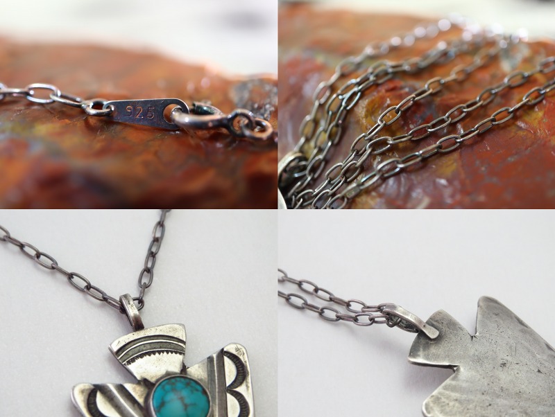 付属のシルバーチェーンは新しいものですが太さのある925シルバー製で、独自にアンティーク加工を施しており、ビンテージ作品によく馴染む表情になっております。