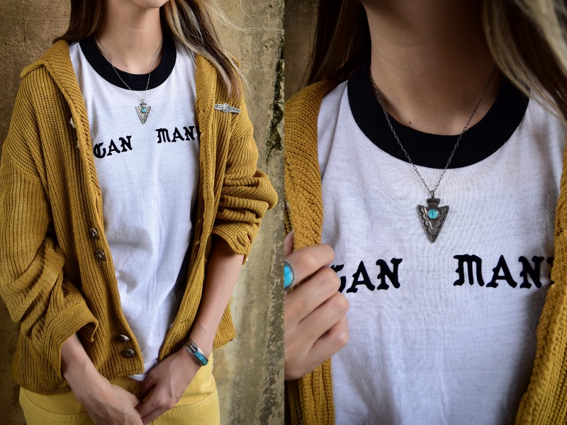また、ナバホ以外のやホピ、ズニのジュエリーとも相性が良く、さり気なく日常のスタイルに奥行きをもたらすことが出来るビンテージネックレスです。