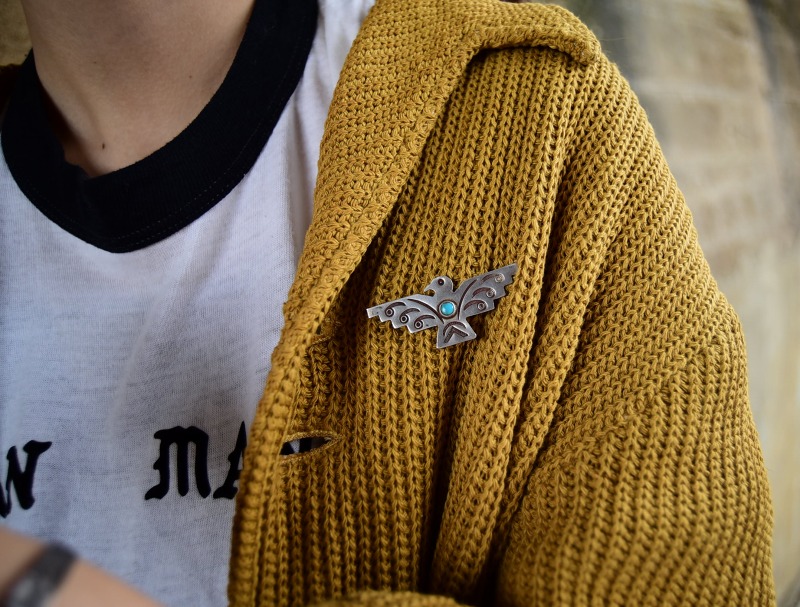 また、サンダーバードモチーフの作品は男性向けのアクセサリーとしても使い勝手が良く、さり気なく『ギャップ』と『遊び心』を与えてくれるアイテムであり、スタイルに奥行きをもたらすことが出来るビンテージピンブローチです。