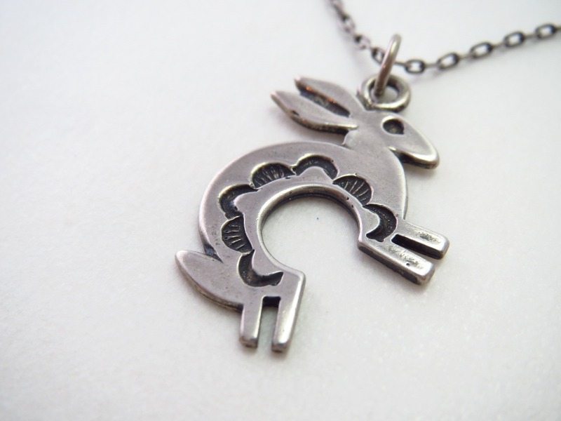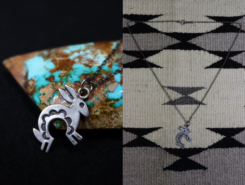 【NAVAJO】ナバホ/【PUEBLO】プエブロの多くの職人が作品を供給している老舗カンパニーである【Sunwest Silver Co Inc】サンウエストシルバーで作られたピース。愛らしいラビットモチーフの小さなチャームが特徴的なビンテージ/オールドネックレスです。