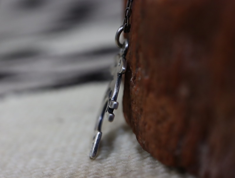 現在もアルバカーキに存在しているSunwest Silver Co Incは、多くのインディアンシルバースミスをバックアップしながら運営されていますが、本作の様な小さなチャームは古くから独自に量産しており、こちらもある程度量産されたピースと思われますが、現在は作られていないモデルであり、現存数の少ない貴重な物となっています。