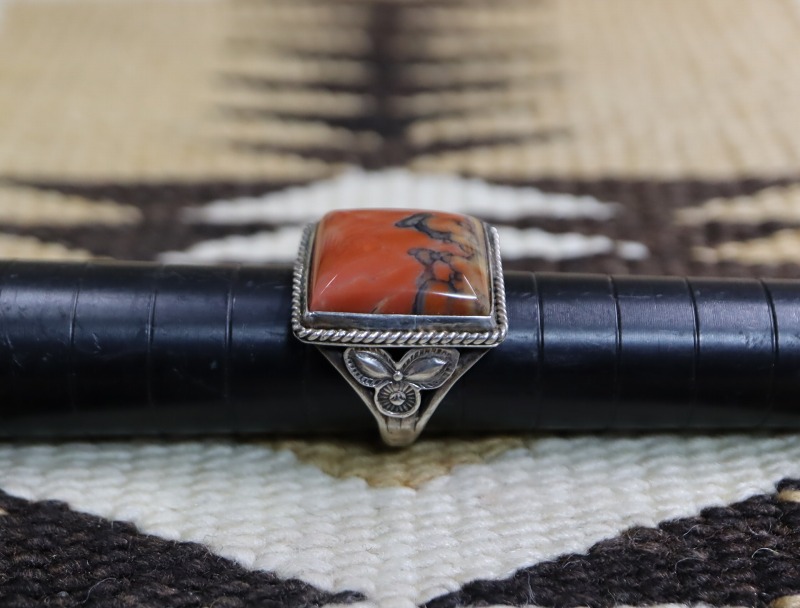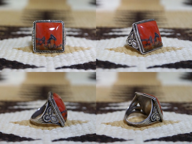 【NAVAJO】ナバホのビンテージジュエリー、ホールマーク(作者やショップのサイン)がなく作者不明となっていますが、ナバホの偉大な作家【Fred Peshlakai】フレッド・ぺシュラカイ(1896-1974)の作品を想起させる作品。細部まで拘った秀逸なシルバーワークをベースに、美しいスクエアカット【Petrifiedwood】ペトリファイドウッド(木の化石)がマウントされたメンズサイズのアンティーク/ビンテージリングです。