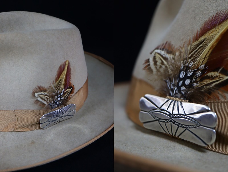 シルバーのみで構成されたソリッドな質感は派手さを生まず、ラペルやハット以外にもコンチョのように使用することも可能で、多くのアイテムに馴染みやすい大変シンプルなピンブローチです。またその少しの立体感により色々な角度からの光を映す為、さり気なくも独特な存在感を示します。