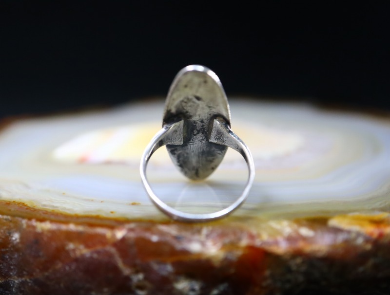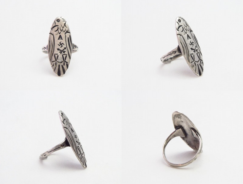 少し縦に長いサンダーバードのシェイプは拡大すると武骨なサンダーバードの表情が際立ちますが、遠目にはクラシックで流麗なシルエットを持ち、さり気なくスタイルに奥行きをもたらすことが出来るビンテージリングです。