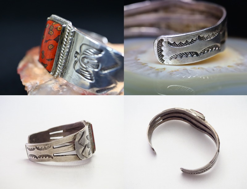 さらに、本作ではサイドからターミナル(両端)にかけてもプリミティブながら力強いスタンプワークが刻まれており、全てのディテールがナバホの伝統的なシルバーワークで構成された作品ですが、細部まで凝ったシルバーワークで構成された上質なブレスレットとなっています。