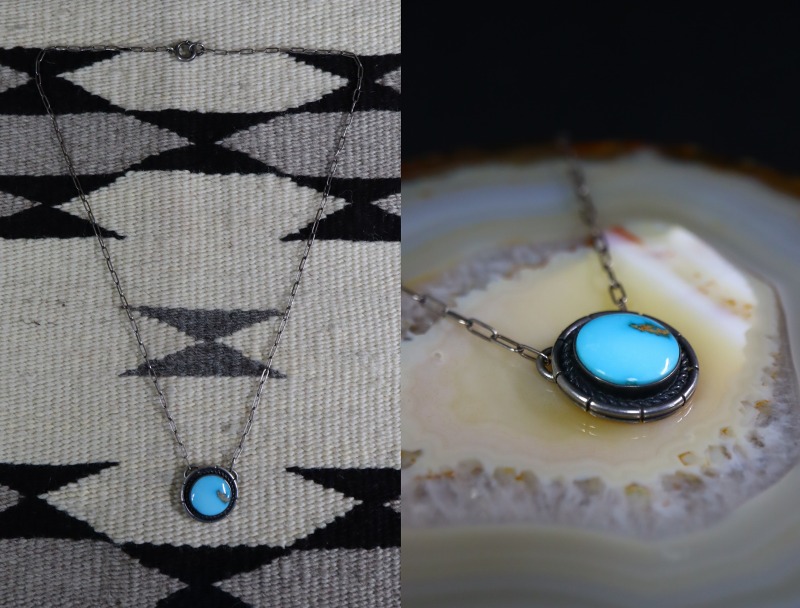 素朴ながら手の込んだシルバーワークによるビンテージインディアンジュエリー独特の質感と綺麗なターコイズは、日常にさり気なくも奥行きを与えるアクセントになり得るネックレスです。