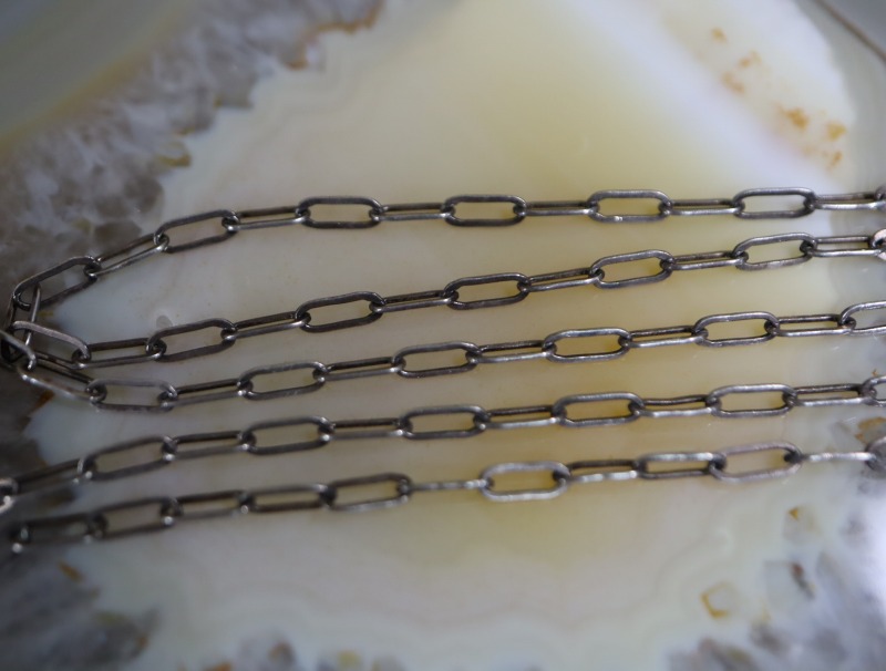 シルバーチェーンもビンテージのフラットワイヤーによるロング小豆チェーンを使用しており、トップのデザインに良くフィットするチェーンです。