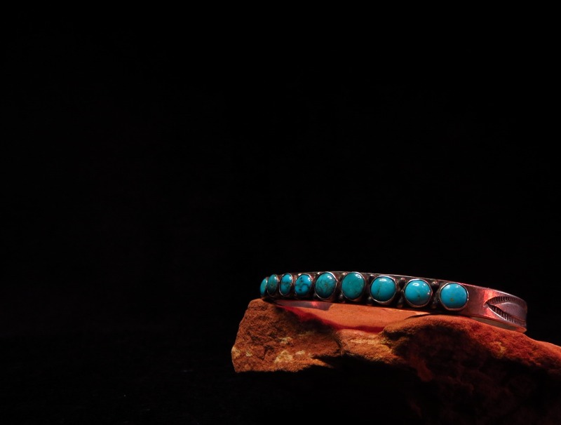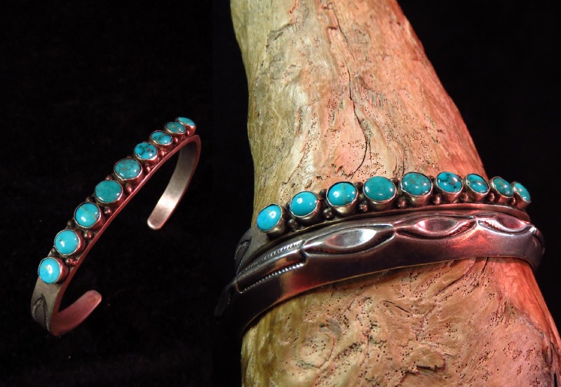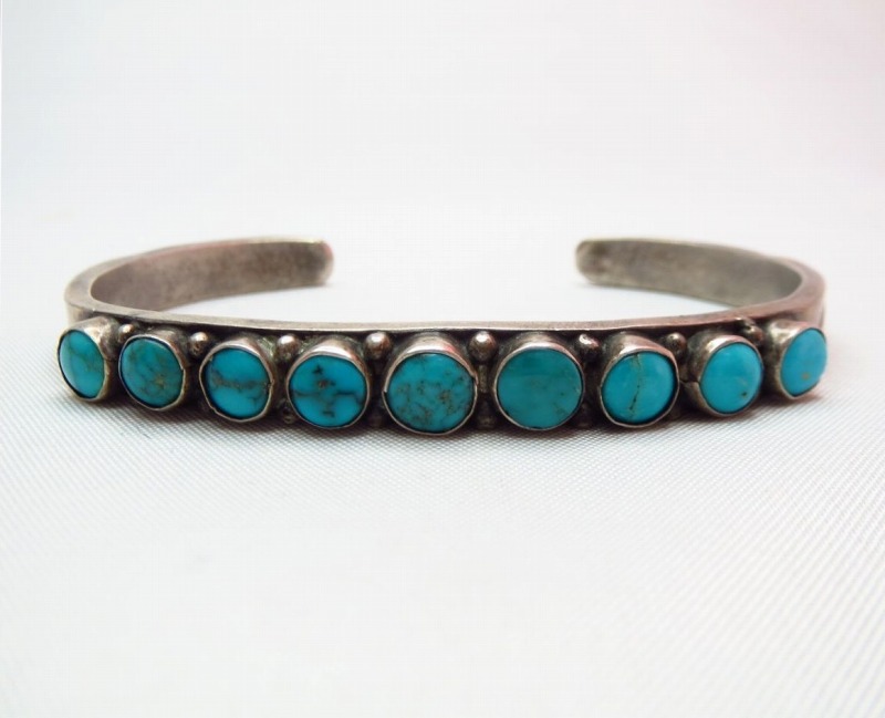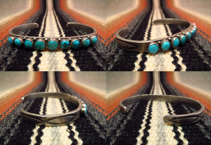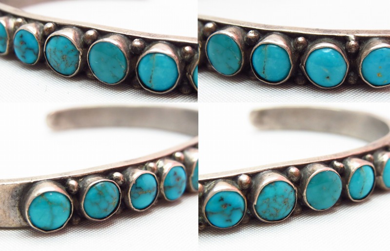 【ZUNI】ズニ族の作品(ナバホの可能性あり)で大変美しいターコイズがセットされたローワーク、ビンテージバングルです