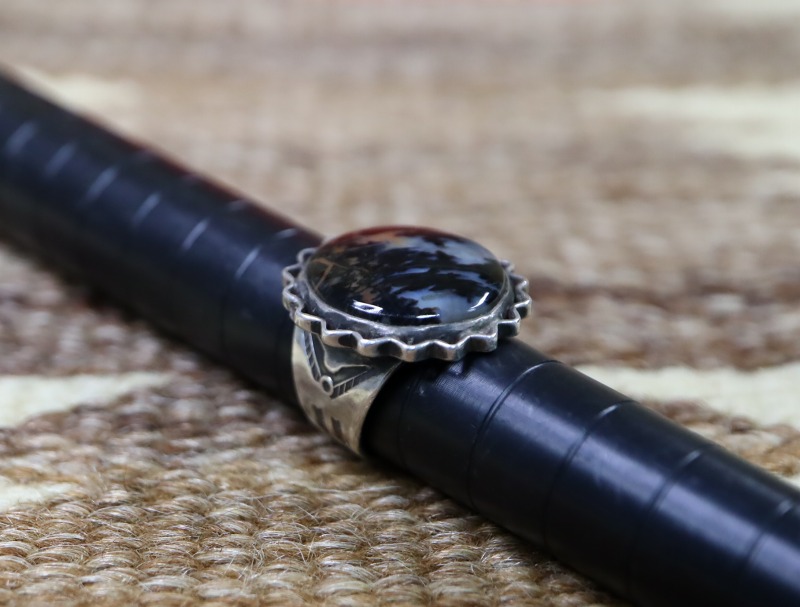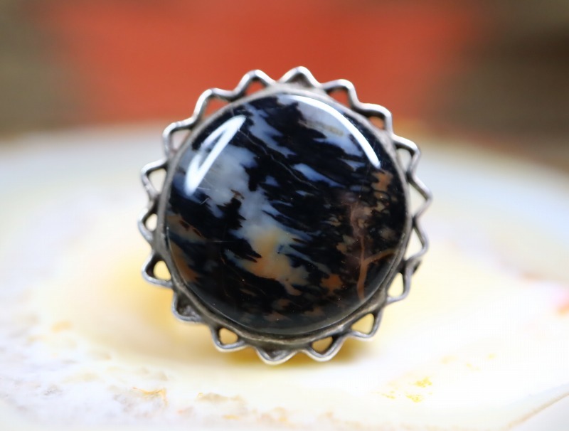 【NAVAJO】ナバホのアンティークジュエリー、神秘的で妖艶な美しさを持った【Petrified Wood】ペトリファイドウッド(木の化石)がメインに構成された作品。独自性のあるデザインと、繊細で手の込んだシルバーワークも印象的なアンティーク/ビンテージリングです。