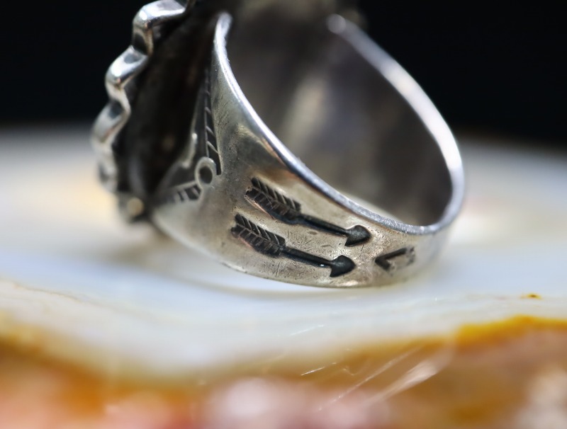 古いインディアンジュエリーらしい味わいを持ったクラシックな造形/デザインながら、現代的な表情も感じさせるリング。日本において多く紹介されているインディアンジュエリーとは違ったフィーリングを与えてくれるアイテムであり、不思議な魅力を宿すビンテージジュエリーです。