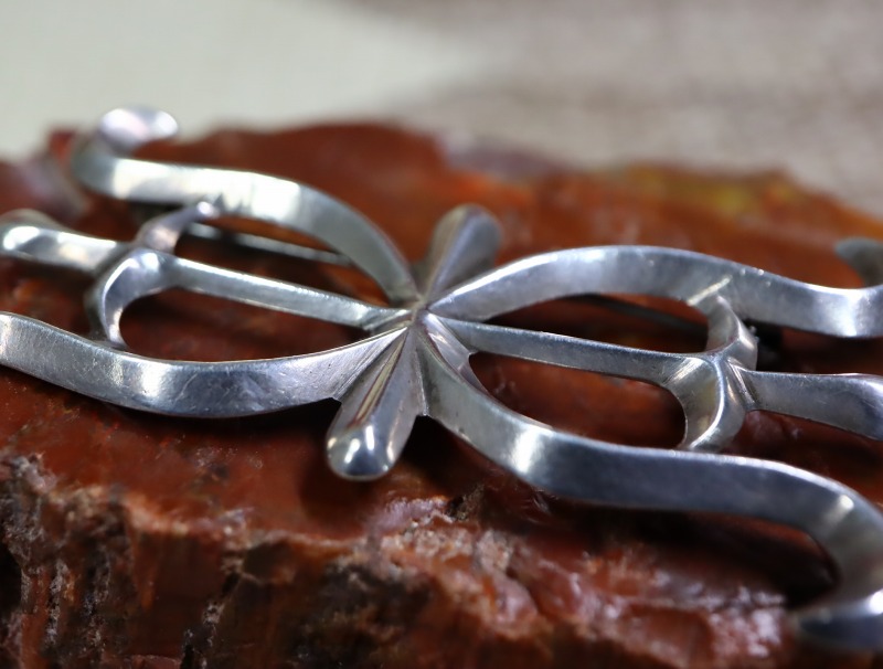 当時、インディアンジュエリー創成期のリバイバル作品制作をメインとしたナバホギルドですが、やはりその完成度や古典を踏襲しながらも新しいクリエーションを含んだ作品群は、アンティークよりもクリーンで練り上げられた造形美を持っています。さらにそれらは現在、インディアンジュエリーという枠に収まらず、多くのシルバージュエリーブランドにとってのデザインソース/アーカイブの一つとなっています。