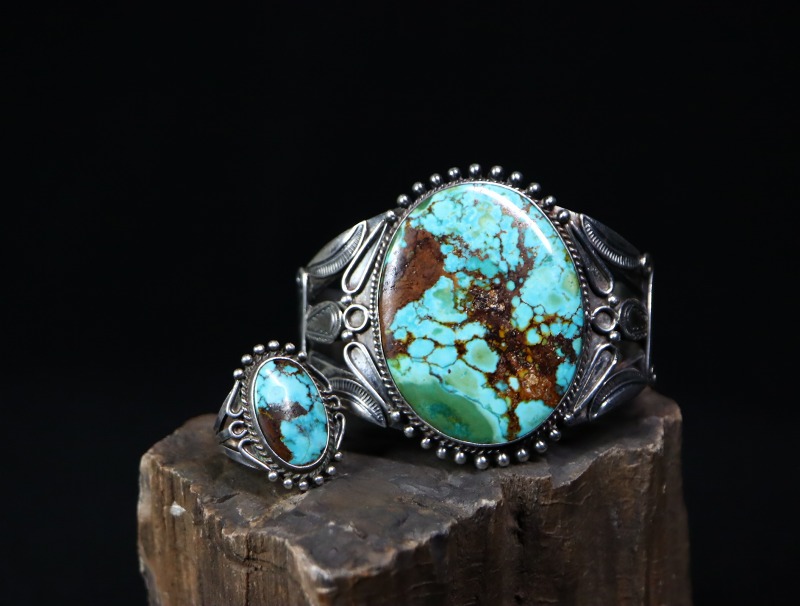 リングとしてとても綺麗なバランスに仕上がった作品で、オーセンティックで洗練されたデザイン/造形はワイルドで味わい深いターコイズを強調し、際立たせているようです。