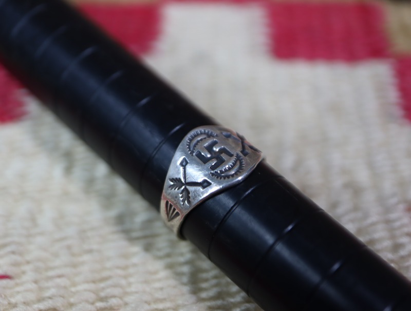 しかしながら、1933年のナチスドイツ出現、1939年にWW2開戦によりアメリカにおいては敵国ドイツのハーケンクロイツと同一記号は不吉だとして使われなくなってしまいました。 当時の新聞記事にも残っていますが、インディアンたちにも卍が入った作品の廃棄が求められ、政府機関によって回収されたりしたようです。 その後、大戦中にも多くが廃棄されてしまった歴史があり、現存しているものは大変貴重となりました。