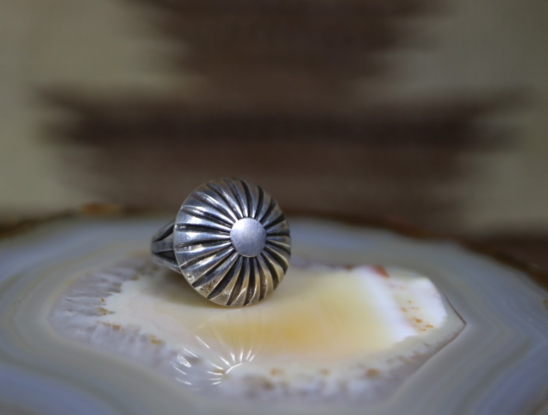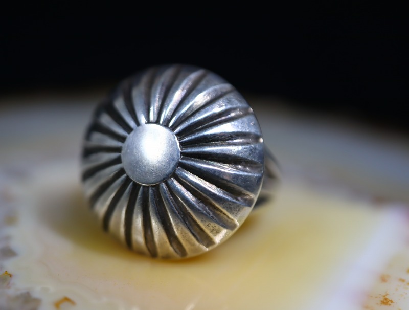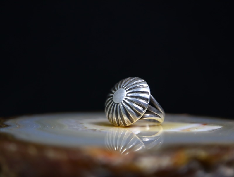 現在、シルバービーズの球体や本作の様な半球体のコンチョは『ナバホパール』や『デザートパール』とも呼ばれ、インディアンによる『パールリング/真珠の指輪』と言えるスペシャリティを持ったリングとなっています。