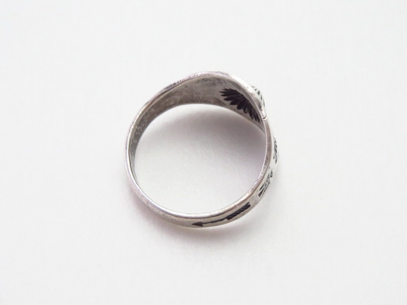 また、オールドナバホを代表するシェルコンチョの立体的な細工と、古いインディアンジュエリーの渋いシルバーの質感によって、ツーリストジュエリー/フレッド・ハービースタイル特有のポップな雰囲気と共に、武骨でエスニシティな表情を持つ素朴でナチュラルなリングとなっています。