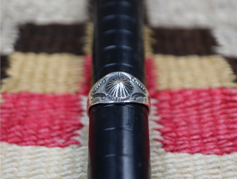 【Cigar Band Ring】シガーバンドリングは、インディアンジュエリーに限らずセンターが広く内側が細いシャンクの造形を持ったリングの俗称です。語源については、葉巻に巻かれている帯が元となっています。現在ではブランドが確認できるデザインが描かれていますが、もともとは手袋や手に葉巻によるシミが付くことを防ぐ為に考案された帯です。その帯と形状が似ていることから同スタイルのリングが『シガーバンドリング』と呼ばれるようになりました。