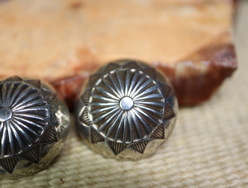 現在、シルバービーズの球体や本作の様な半球体のコンチョは『ナバホパール』や『デザートパール』とも呼ばれ、インディアンによるパールアイテムとも捉えることが事が出来る作品です。
