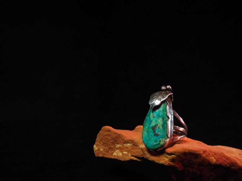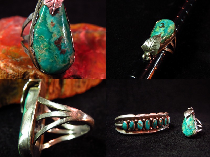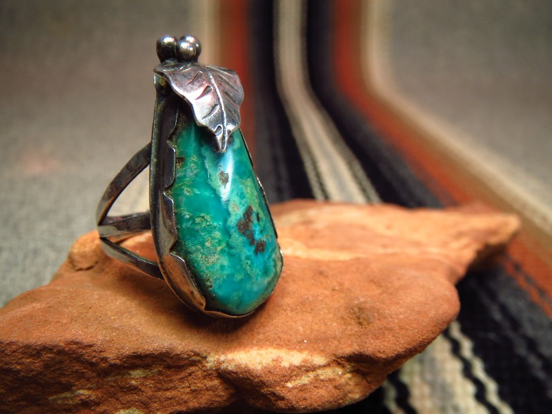 40年代末~50年代頭頃、インディアンジュエリーの世界に初めてリーフ(たばこの葉)の造形を取り入れた人物と知られており、こちらはそんな氏の作品を象徴するようなデザインのリングです。