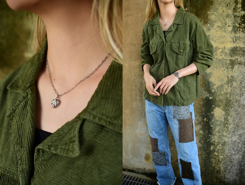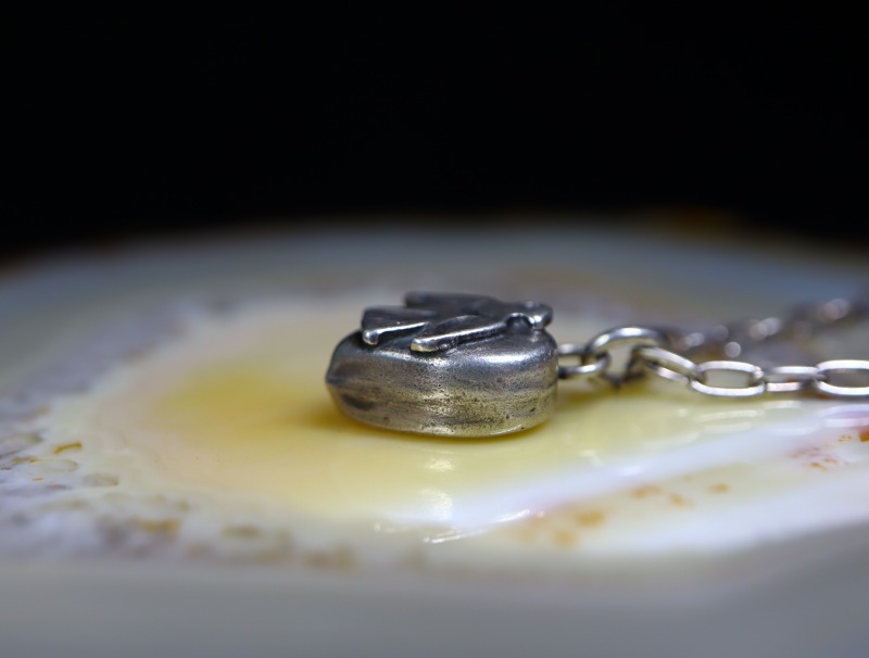 付属のシルバーチェーンは新しいものですが、こちらも925シルバー製で独自にアンティーク加工を施しており、ビンテージピースによく馴染む表情になっています。