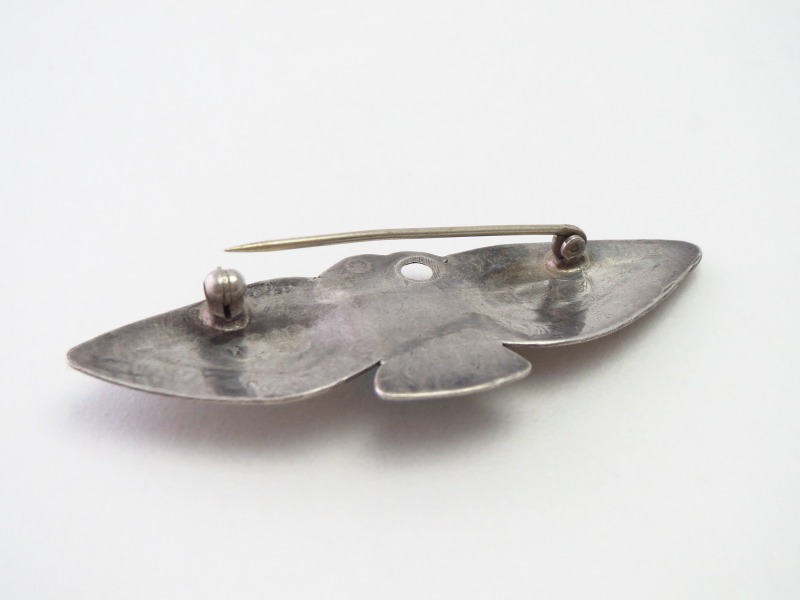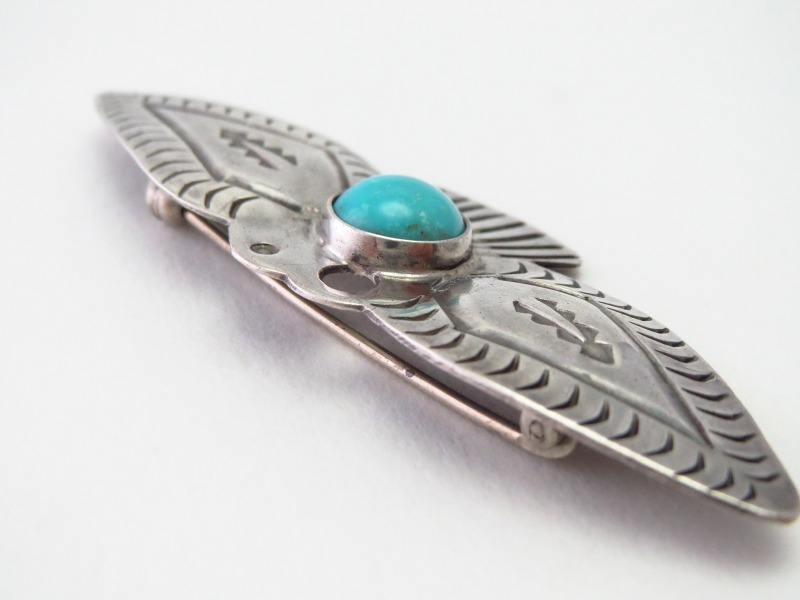 本作も1920年代末頃~1940年代前半頃に作られた作品で、インゴットシルバー(銀塊)からハンマーワークと、機械によるプレスではなくハンドカッティングによって菱形に近いサンダーバードシェイプが生み出されています。