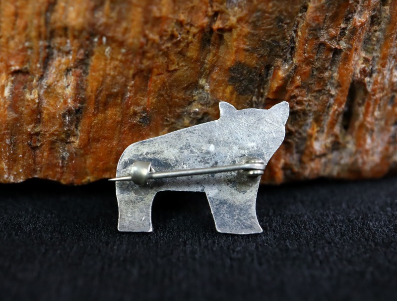 【Fred Harvey Style】フレッド・ハービースタイルや【Tourist Jewelry】ツーリストジュエリーと呼ばれる、20世紀前半頃にアメリカ中西部の観光客向けに制作されたスーベニアアイテム(土産物)の一つ。キャッチーなベア/熊モチーフが愛らしい小さいサイズのアンティーク/ビンテージピンブローチです。