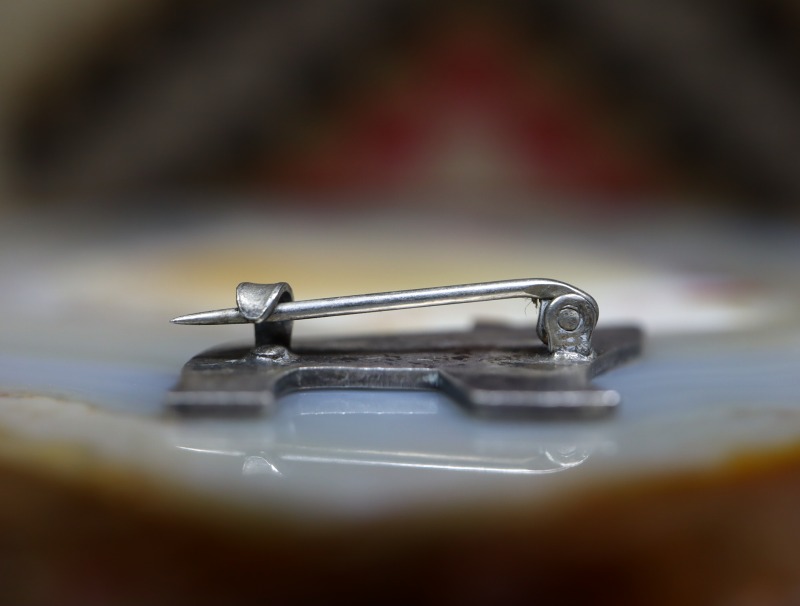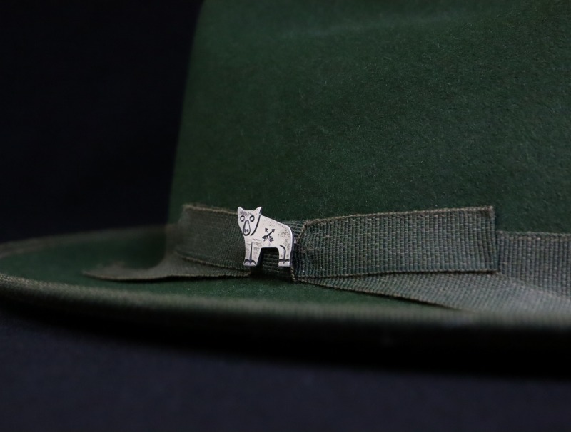 また、ピンとして大変スタイリングしやすく、多くのスタイルにフィットさせることが出来る汎用性を持っています。アウターのアクセントととして、ラペルや襟等にもフィットしますし、キャップ・ハット等のワンポイントにも合わせやすいと思われます。