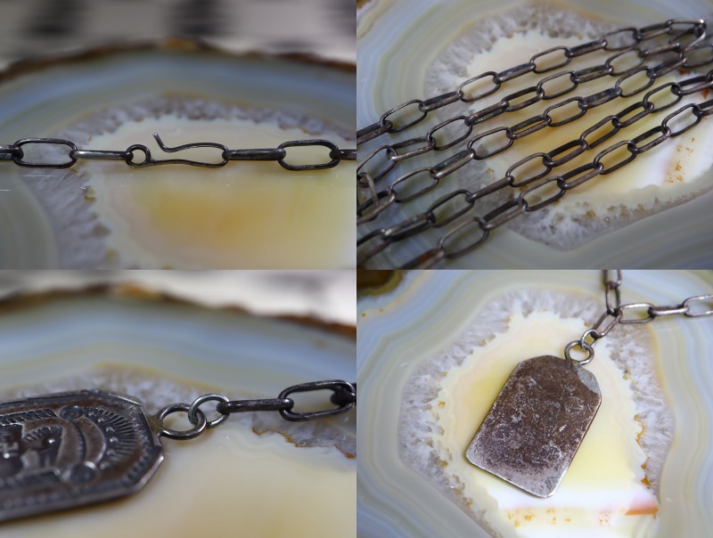 さらに、チェーンもナバホメイドのハンドメイドシルバーチェーンとなっています。タグとは異なった年代に作られたチェーンと思われますが、前オーナーによって組まれた貴重なビンテージチェーンです。