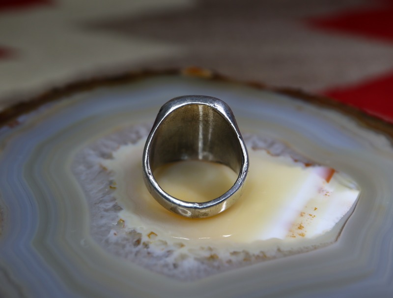 完成したリングとしては、一見シンプルなシールリングのフォルムが実現していますが、実際には非常に手の込んだ独特な構成となっています。それらは立体として構築する為、緻密で計算と正確な仕事が両立しなければ構造が破綻してしまう為、とても高いシルバーワークの技術を必要とします。その為、現代では高名な作家のみが受け継ぐ製法・技術となってしまいました。