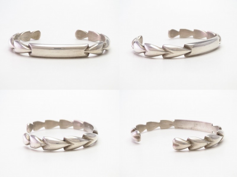 こちらの場合にも、類似した作品の無いオリジナリティや、内側の美しい研磨、ホールマークや素材を表す刻印が刻まれていない等、不確定な判断材料から1960年代~1990年代に制作された作品であることが推測されますが、推測の域を出ない考察となります。