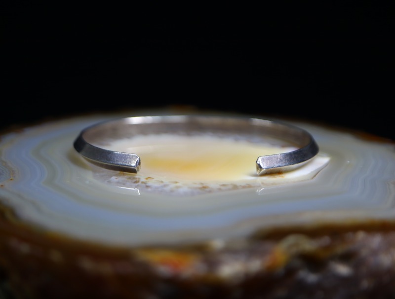 また、ターコイズ等の石も付かない為、ナチュラルでさり気なく馴染みやすい印象を持った作品であり、ミニマルで堅牢なシルバーワークは、長年にわたってご愛用いただけると思われます。