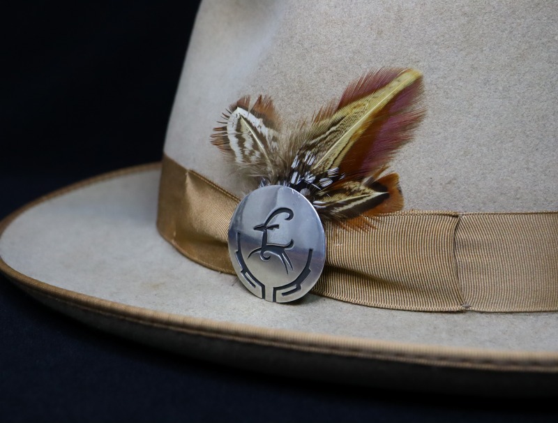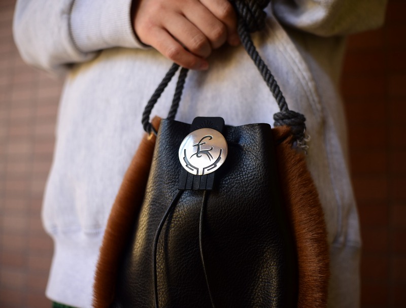 また、コンチョを元にした作品の為、ラペルやハット以外にも多くのアイテムになじみの良いシンプルなピンブローチです。とてもクリーンで無駄のないデザインはタイムレスに洗練された印象を与えます。