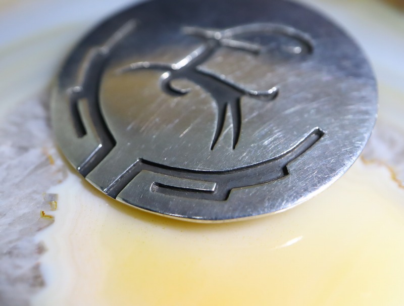 また、現在ではホピの伝統的な技術として認知されているオーバーレイ技法ですが、本作が作られた当時はまだ、ホピの作家によってその技術が高められる黎明期であり、ホピ以外のナバホ・プエブロのシルバースミスにも新しい表現方法として色々な作品が作られていました。