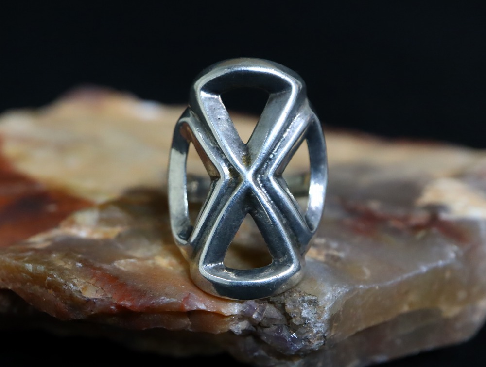 【NAVAJO】ナバホのビンテージジュエリー、サンドキャストで成形された美しいデザインの作品。大胆にクロスの造形をフェイスに構成したアンティーク/ビンテージリングです。