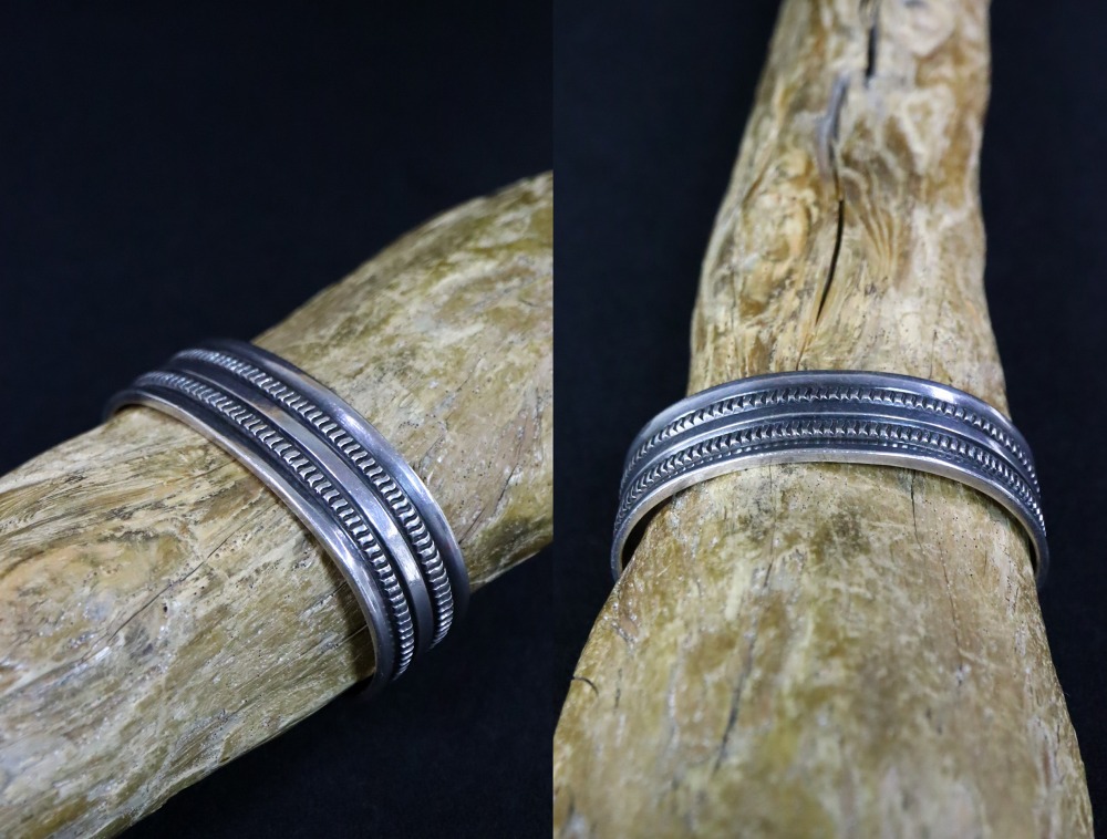またこの様な非常にシンプルでミニマルなデザインは、特別な特徴を持っていないようにも感じられますが、当時、ナバホギルド又は同組織出身のシルバースミス以外には作られていない造形スタイルであり、簡単に再現できない技巧と作者の精神性が注ぎ込まれた作品です。