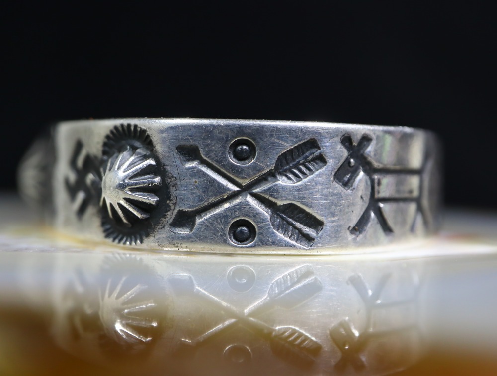 1920年代後半~1930年代に作られたと思われる作品で、コインシルバー(銀含有率90.0%)から作られたバンドは、日本において『平打ち』と呼ばれる造形がベースとなっています。