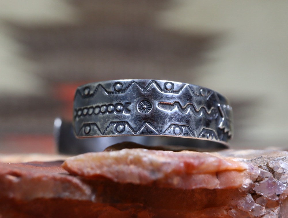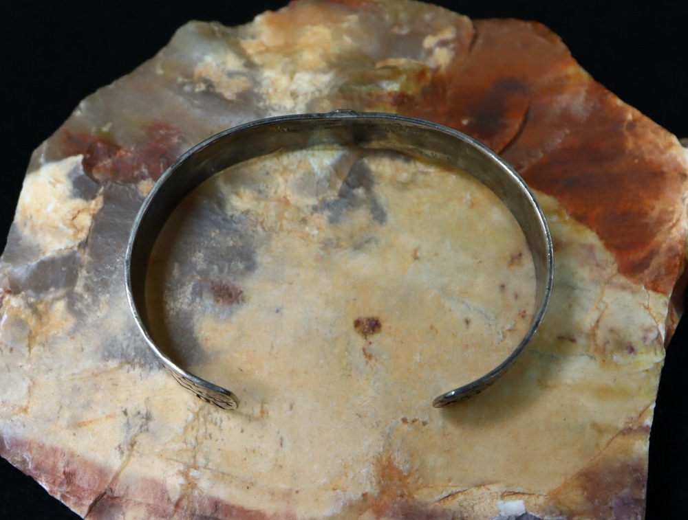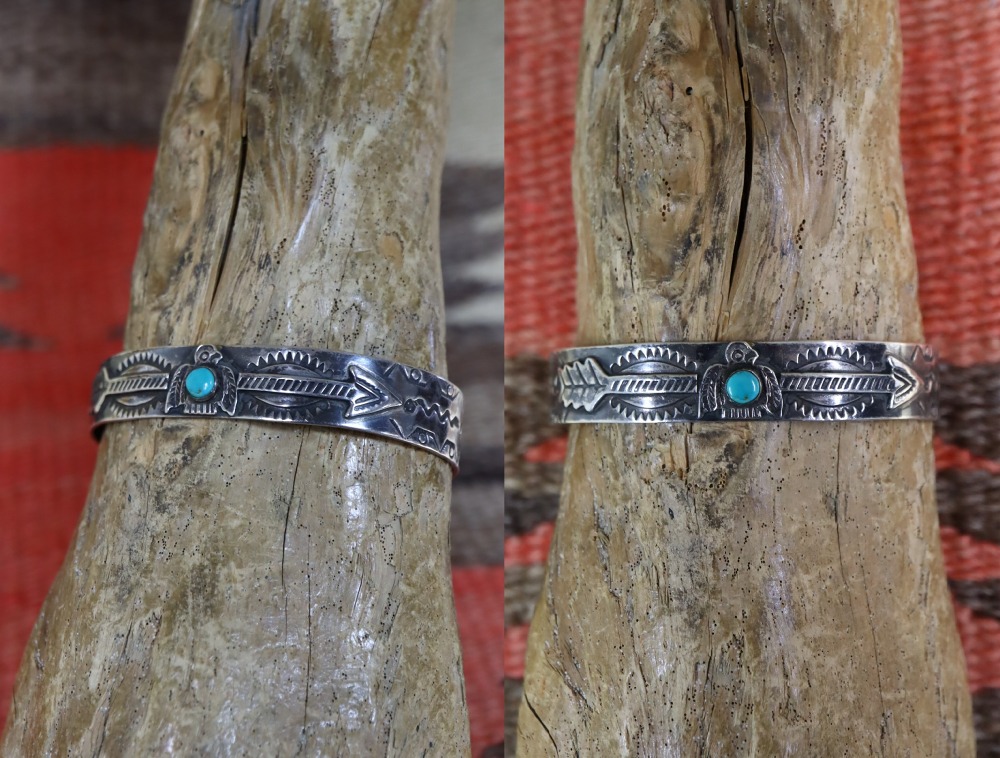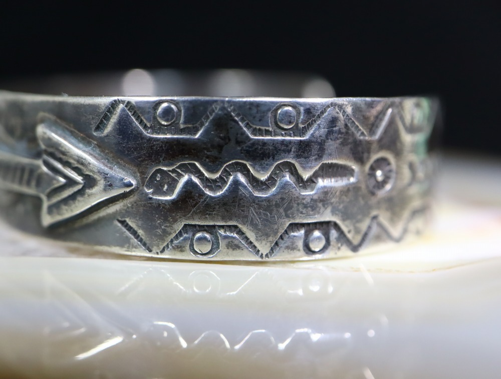 【NAVAJO】ナバホのアンティークジュエリー、【Fred Harvey Style】フレッド・ハービースタイルや【Tourist Jewelry】ツーリストジュエリーと呼ばれる20世紀前半頃にアメリカ中西部の観光客向けに制作されたスーベニアアイテム(土産物)として作られたアンティーク/ビンテージバングルです。