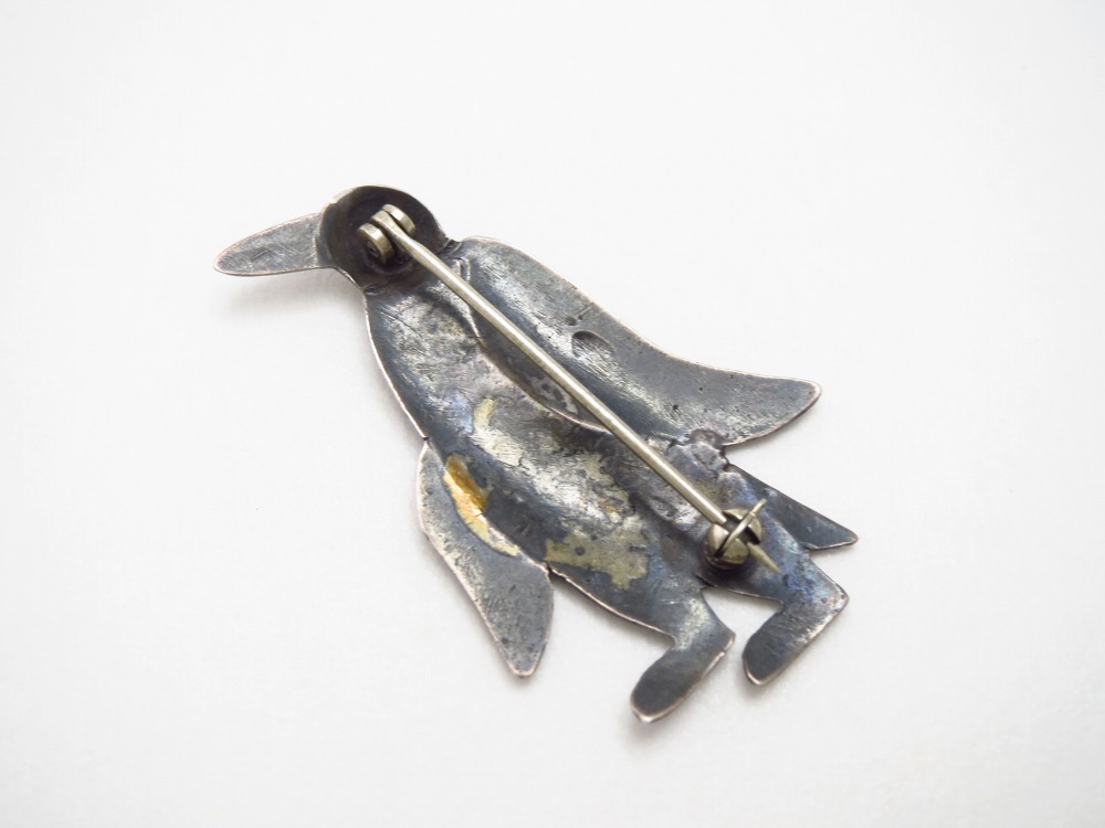 1930年代~1940年代前半頃に作られた作品で、インゴットシルバー(銀塊)から成形された地金をベースとして、躍動的なペンギンが全て手作業による細かなカッティングワークで切り出されています。
