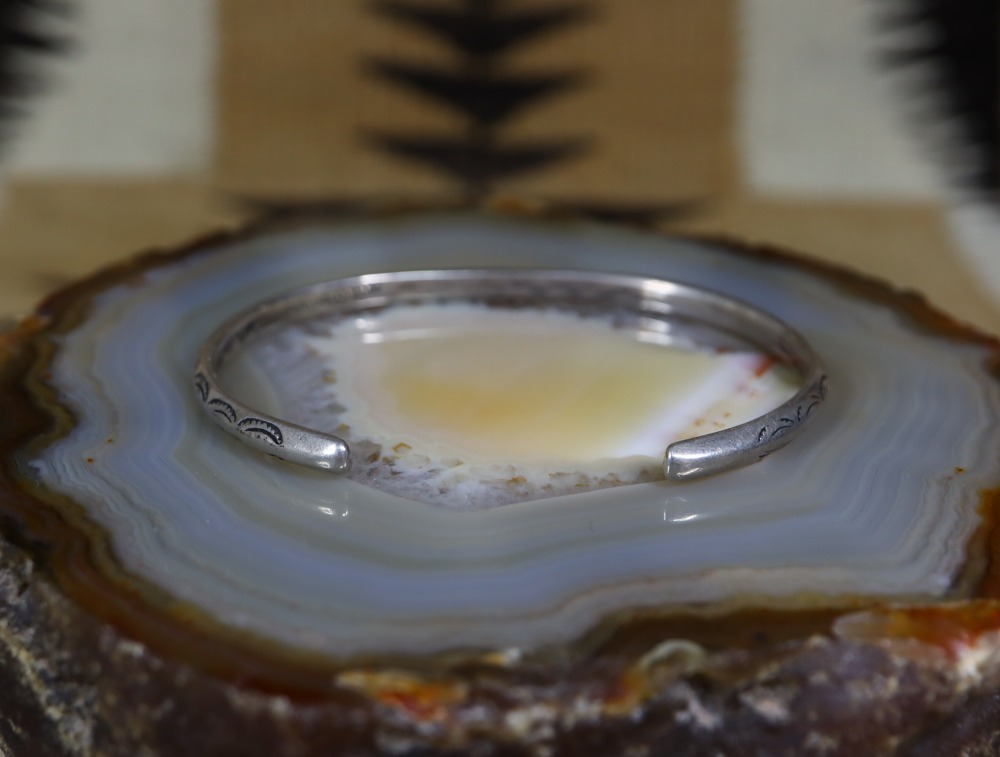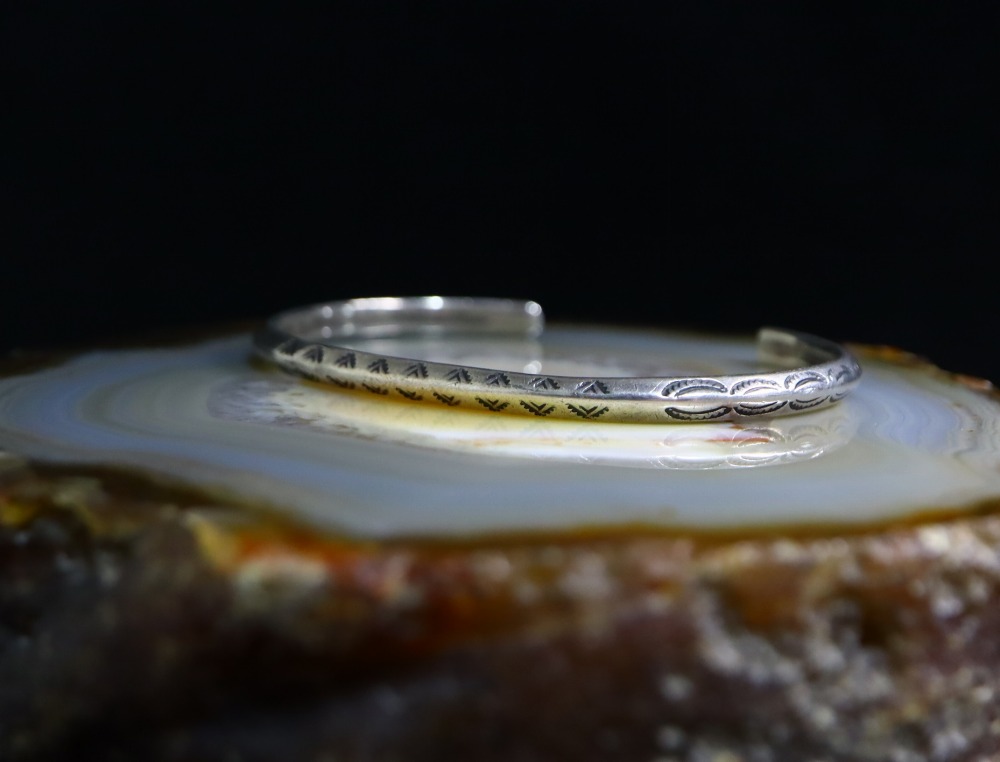 そして、上下対称に刻まれたスタンプワークもオールドナバホらしいシンプルな文様が規則的に力強く施されており、その完成度を高めています。
