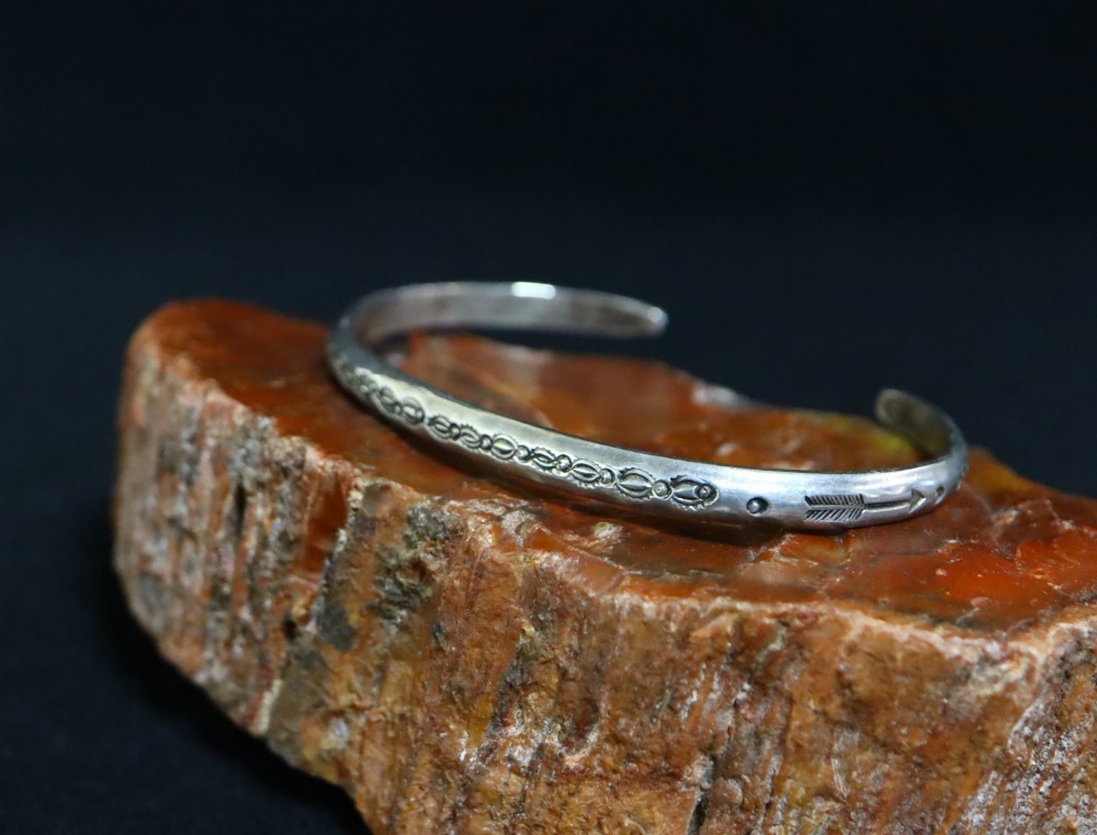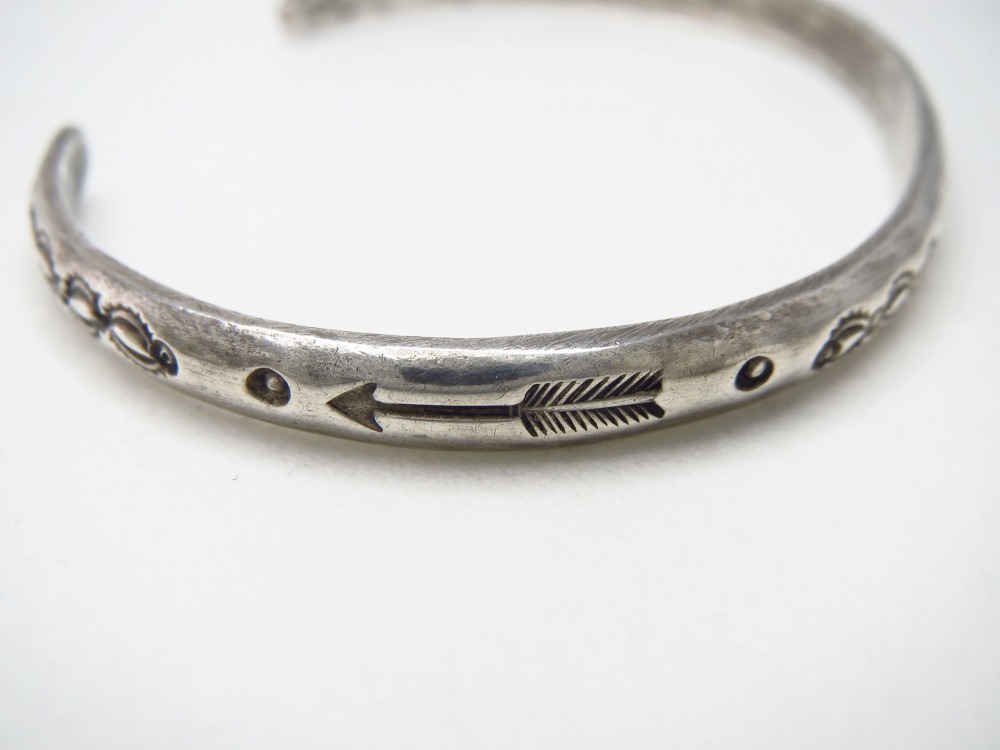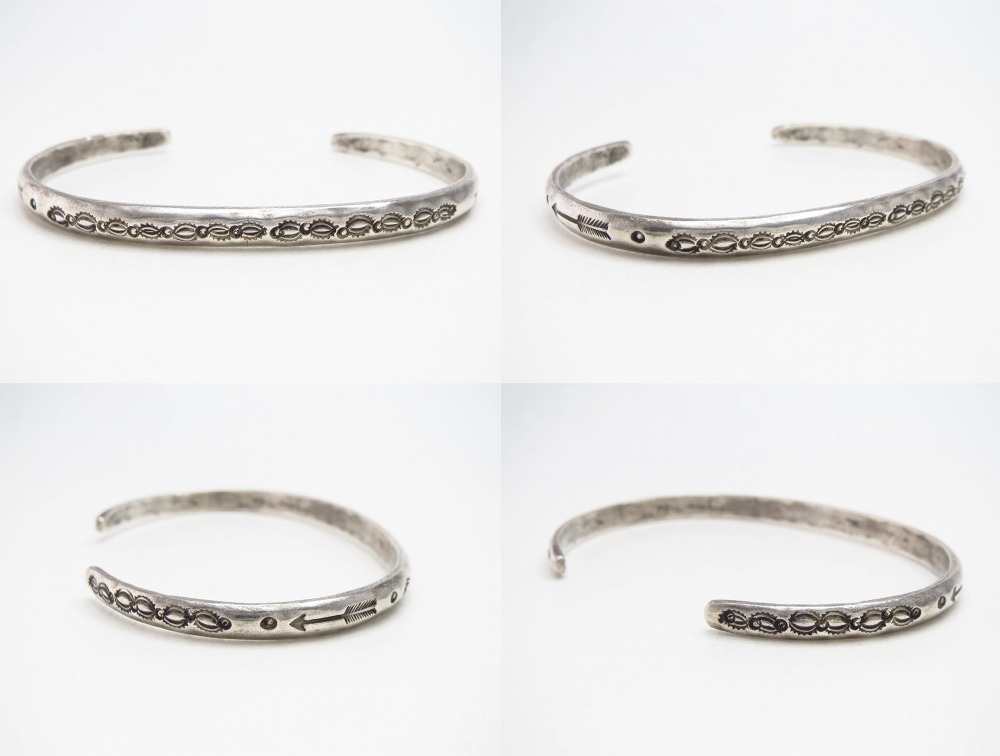 また、全体にアンティークナバホジュエリーらしいスタンプワークが施されておりますが、サイドにはアローのモチーフが刻まれる事で、少しキャッチーなイメージも付加され、本作の魅力の一つとなっています。