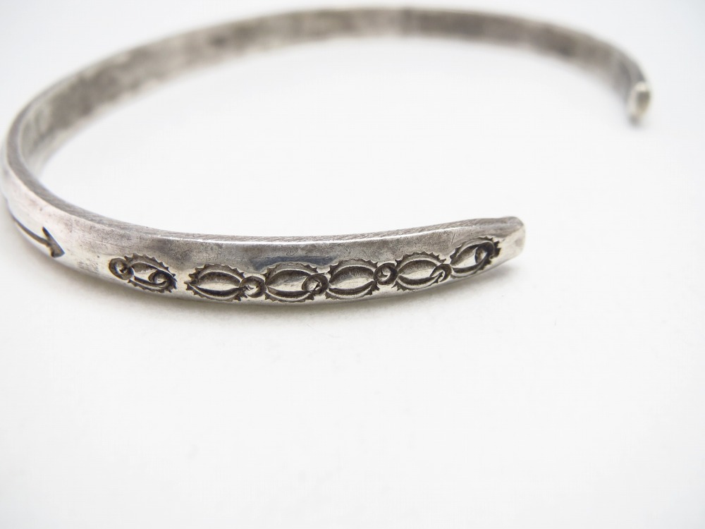 【NAVAJO】ナバホのアンティークジュエリー、インゴットシルバー(銀塊)から成形された独特なナローハーフラウンドワイヤーをベースとしたアンティーク/ビンテージバングルです。