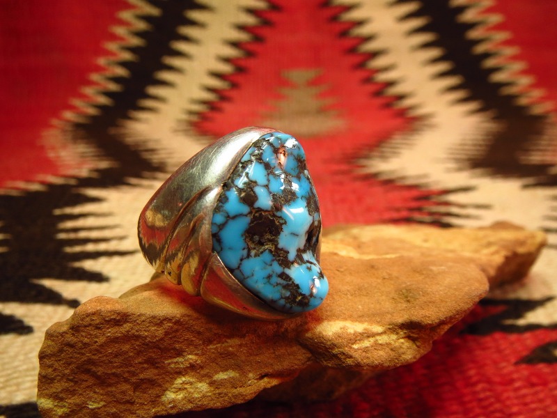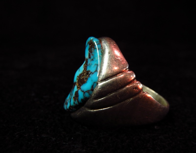 おそらくキャストで成形されたシルバーシャンクはずっしりとした重量感があり、ワイルドで存在感のあるターコイズとバランスの良い造形に仕上がっています。