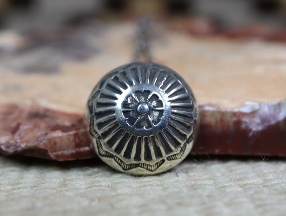 現在、シルバービーズの球体や本作の様な半球体のコンチョは『ナバホパール』や『デザートパール』とも呼ばれ、インディアンによるパールアイテムとも捉えることが事が出来る作品です。