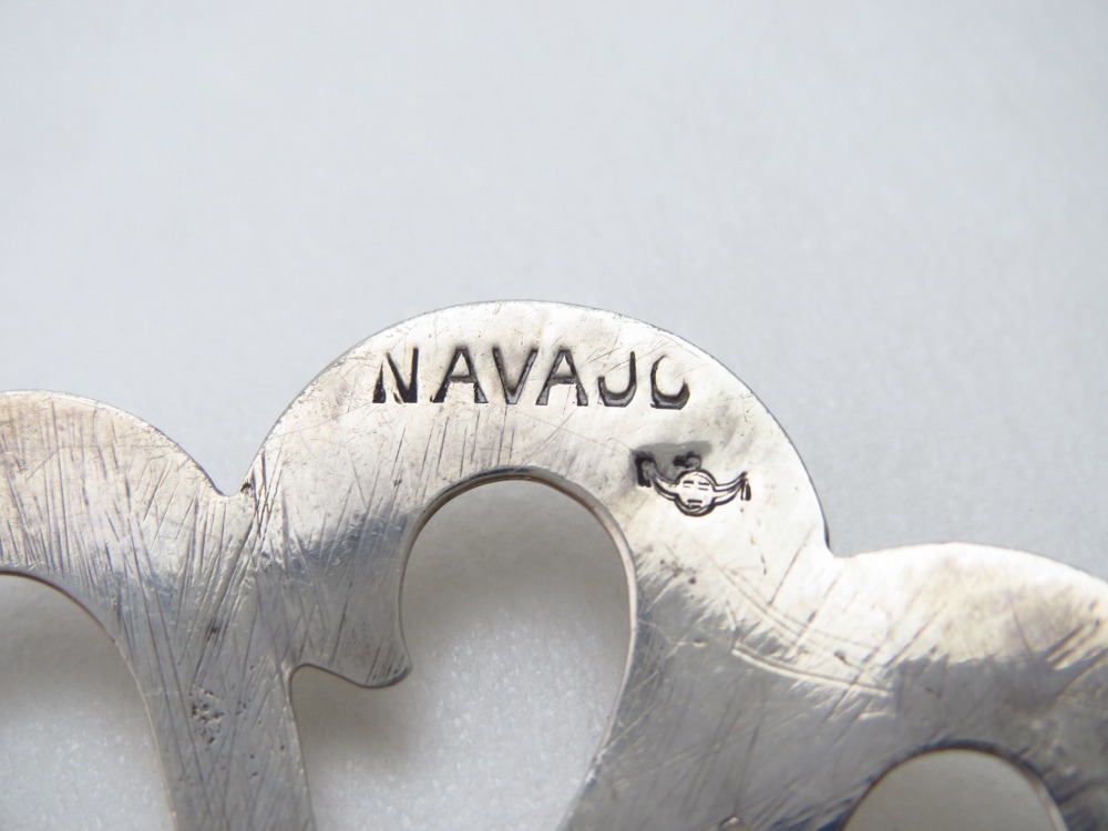 1950年代以降になってからは本作のような『NAVAJO』の文字や、銀含有率92.5%の地金であることを示す『STERLING』の刻印が追加されていきます。