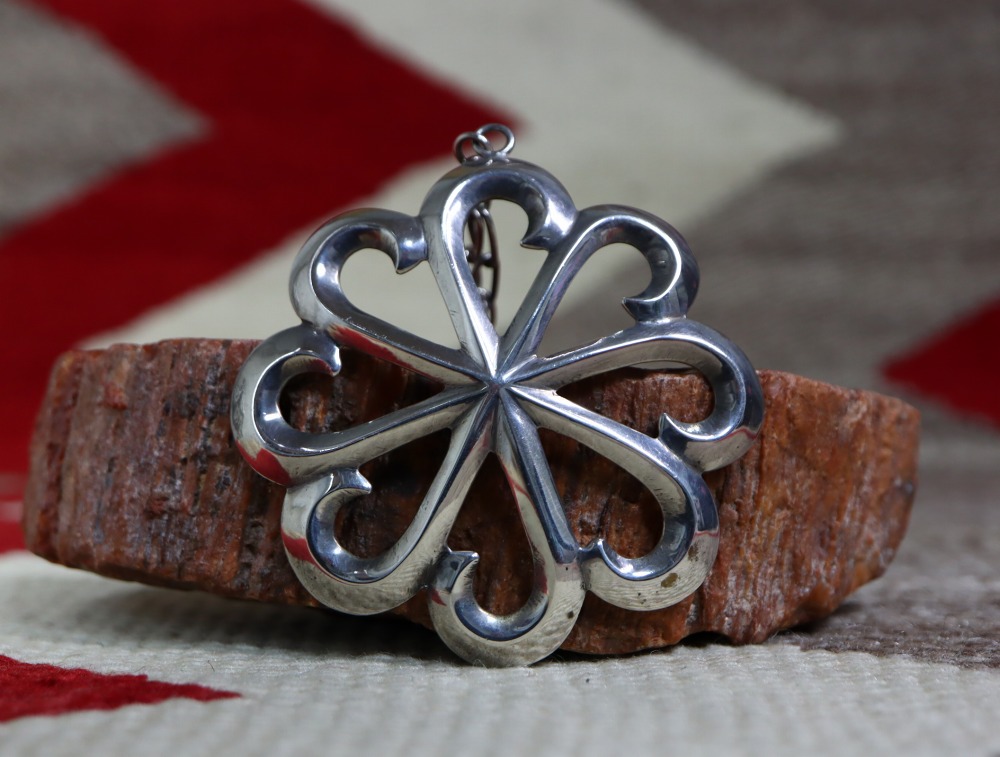 中でもナバホギルドは、UITA等に比べナバホの職人主導で組織された団体で、大巨匠であるナバホのシルバースミスAmbrose Roanhorseが代表を務め、後進の育成や伝統的な技術の伝承、インディアンジュエリーのさらなる普及などを目的に1941年にギルドとして発足しました。明確にはなっていませんが、U.S.NAVAJO/Indian Arts & Crafts Boardが1937年~1940年代の初め頃までしか見られないのも、第二次世界大戦の激化による影響だけではなく、どちらの組織においても重要な役割を担っていたAmbrose Roanhorseが、Navajo Guild/The Navajo Arts & Crafts Guildに注力したためではないかと考えられます。