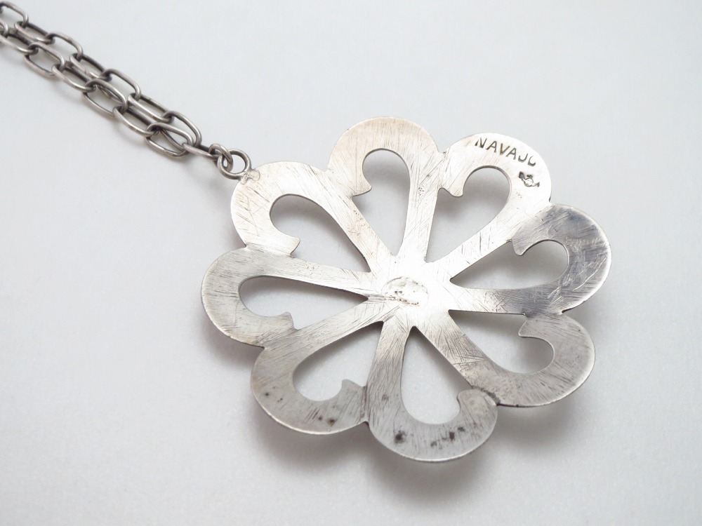 伝統的な技術によって作られた作品であり、ナバホギルドらしい美意識とエッジの仕上げ等の細部には高い完成度を感じさせます。また、少し大きめでボリュームのあるサイズ感や、シンプルで馴染みやすい造形/デザインも特徴的で、大変貴重なネックレスとなっています。